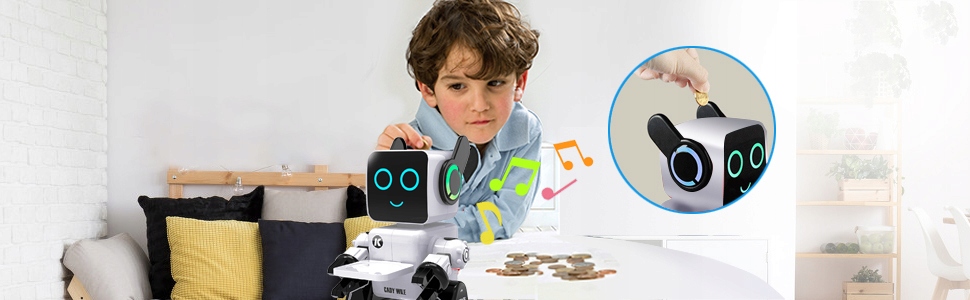 - надає дітям позитивний спосіб навчитися збереженню чесноти. Легкий доступ до монет через ящик із засувкою всередині голови. Наш робот не тільки добре зроблений і красиво розроблений, але й побудований для переживання років частого використання.
