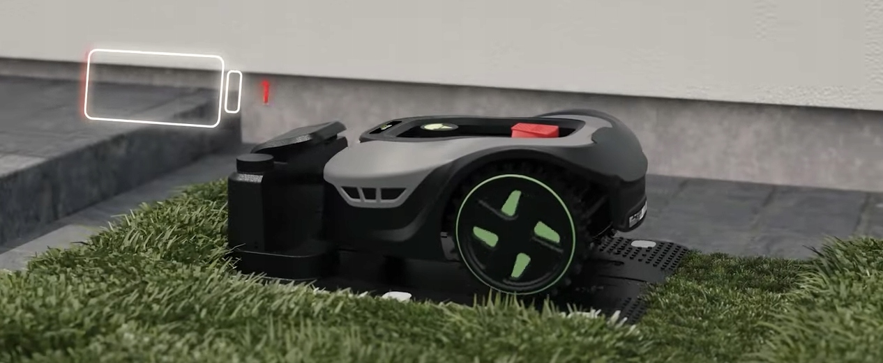 - Завдяки функції автоматичного заряджання, косильний робот знає, коли повернутися до зарядної станції, а система запобігання зіткненням запобігає випадковому застряганню косарки в зарядній станції.