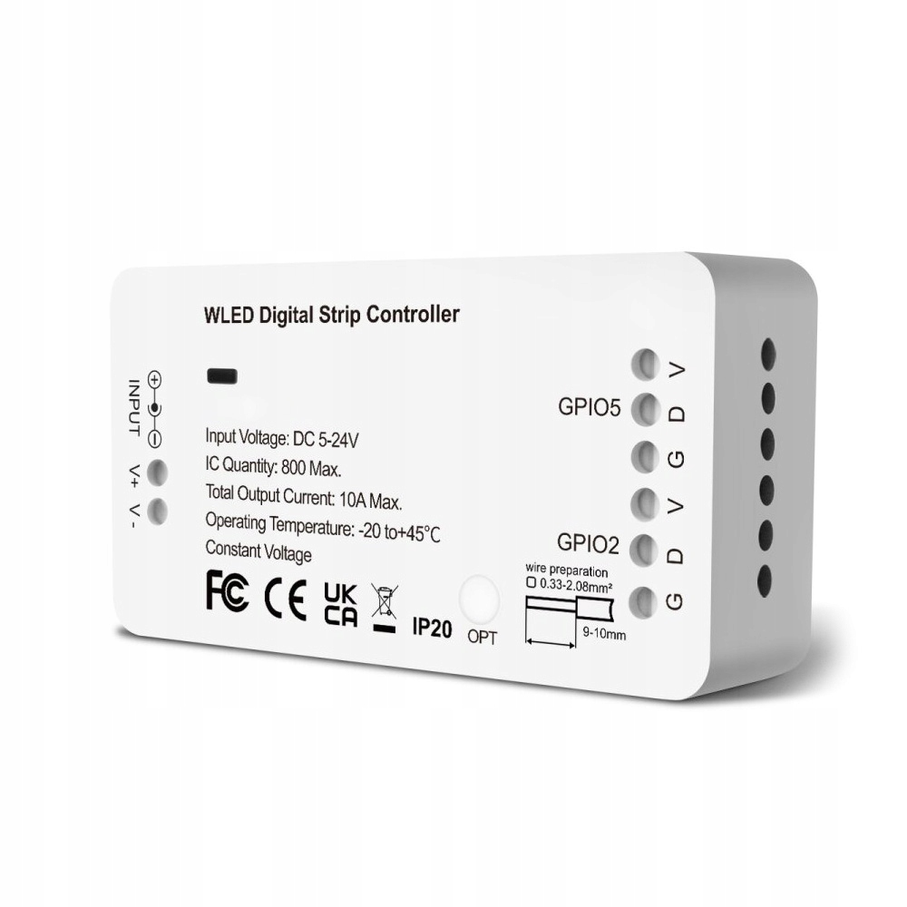 Контролер підтримує RGBIC стрічки (індивідуально адресовано) і керується програмою WLED або за допомогою браузера. Він має широкий вибір понад 100 режимів динамічного освітлення, які можна додатково запрограмувати відповідно до розкладу.
