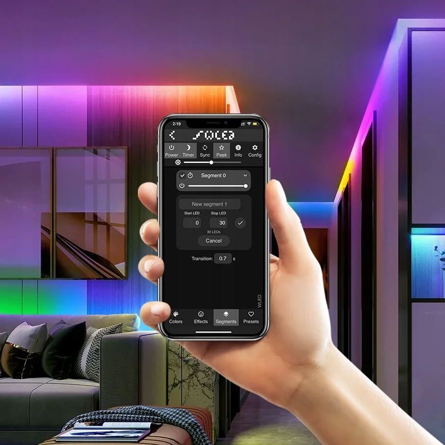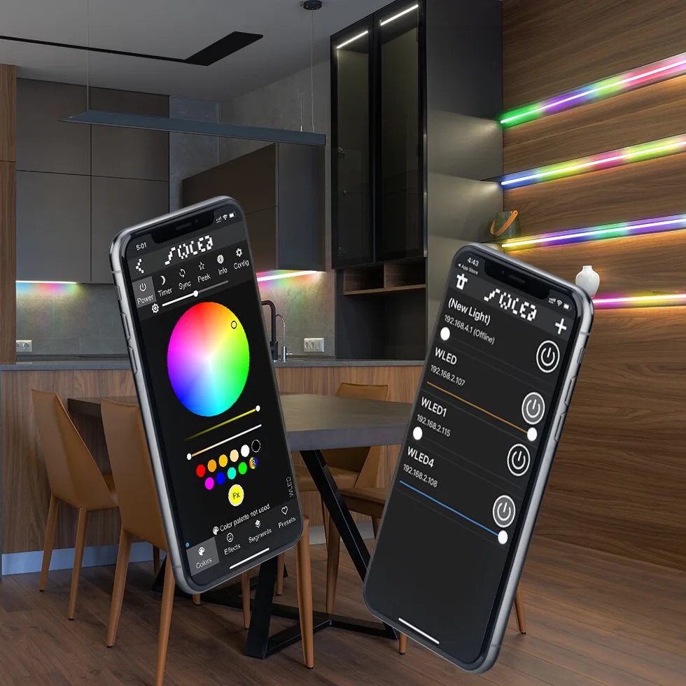 Користувачі можуть легко керувати та регулювати світлодіодну стрічку за допомогою смартфона, завантаживши програму WLED, що дає чудові параметри та варіанти персоналізації.