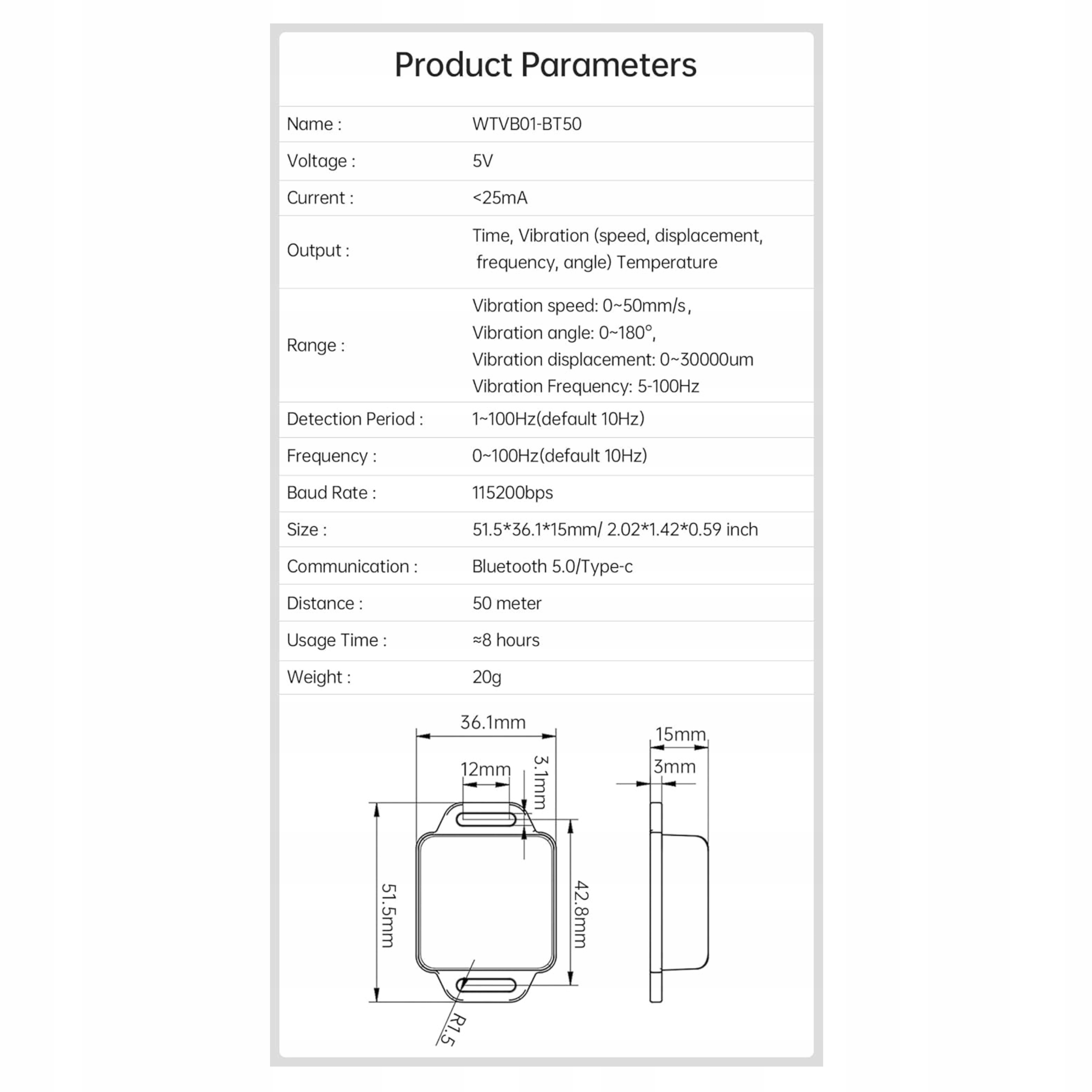 Інтелектуальний вібраційний модуль Bluetooth 5.0, WTVB01, діагностика машини