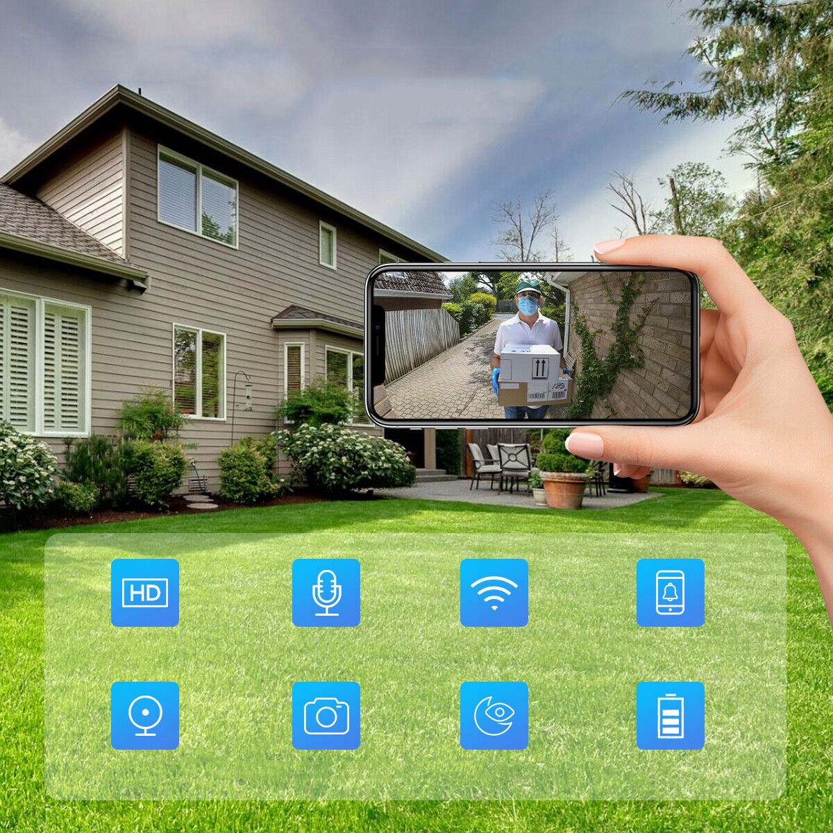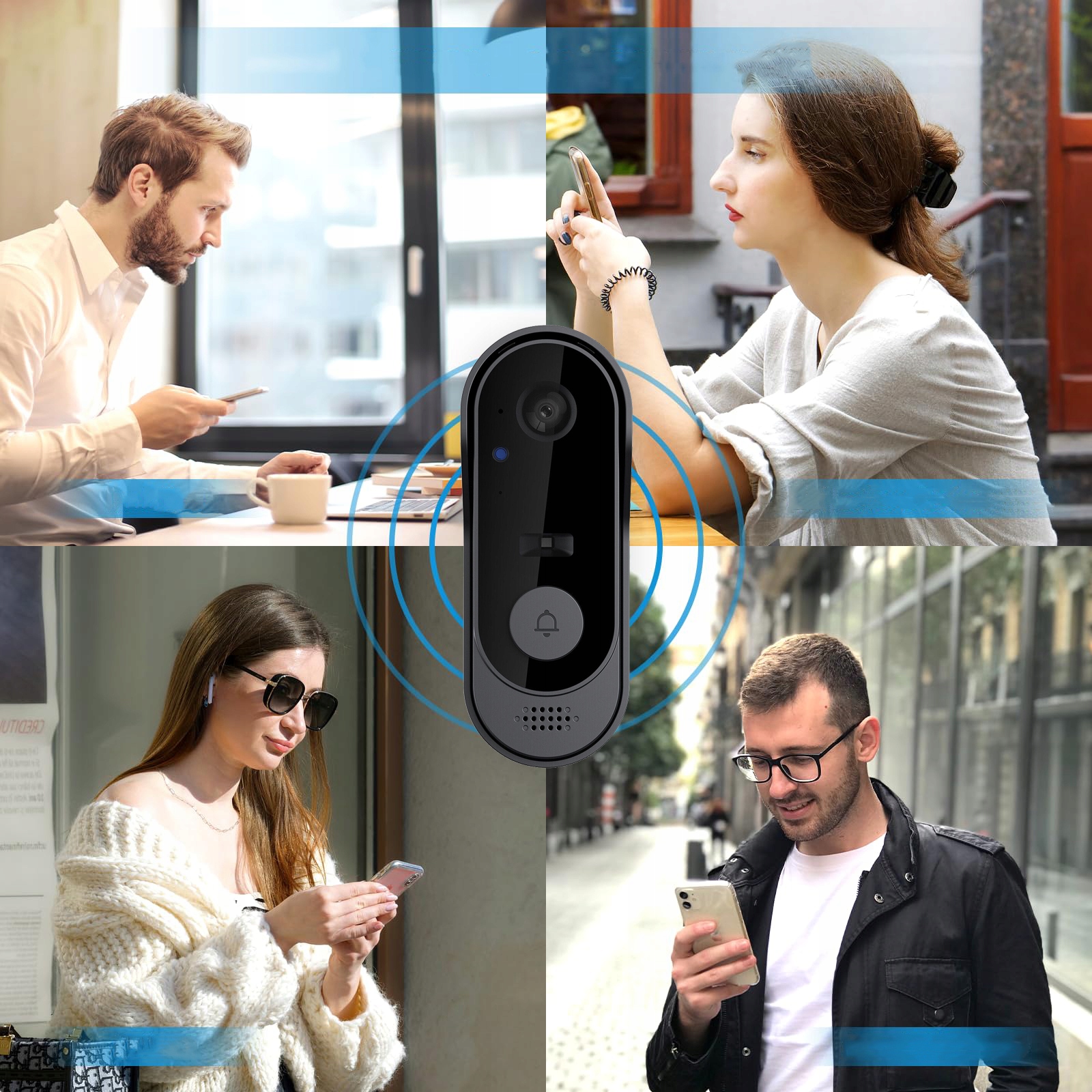 Бездротове з'єднання, вам не потрібні складні кабелі між дзвоном з камерою та монітором, реалізуючи справжню бездротову бездротовість. Вбудований акумулятор 1000 мАг може витримувати 2-3 місяці з щоденним використанням та до 6 місяців у режимі очікування.