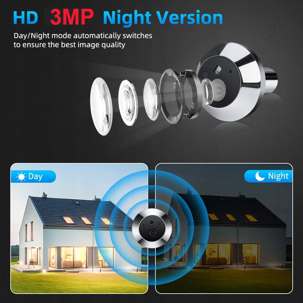 pulwain, щоб вирушити, не мірки) Потужність для виявлення руху. Роздільна здатність 3mpx✅ Відмінна видимість людей перед дверима - об'єктив камери з 2 мм фокусною відстань забезпечує кут спостереження 165 градусів