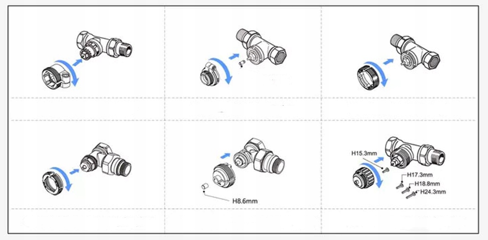 Завдяки кнопці налаштувань ви можете змінювати орієнтацію цифрового дисплея TRV (два варіанти), що полегшує зчитування температури. Термостат можна встановити вертикально або горизонтально майже на всіх радіаторних вентилях.