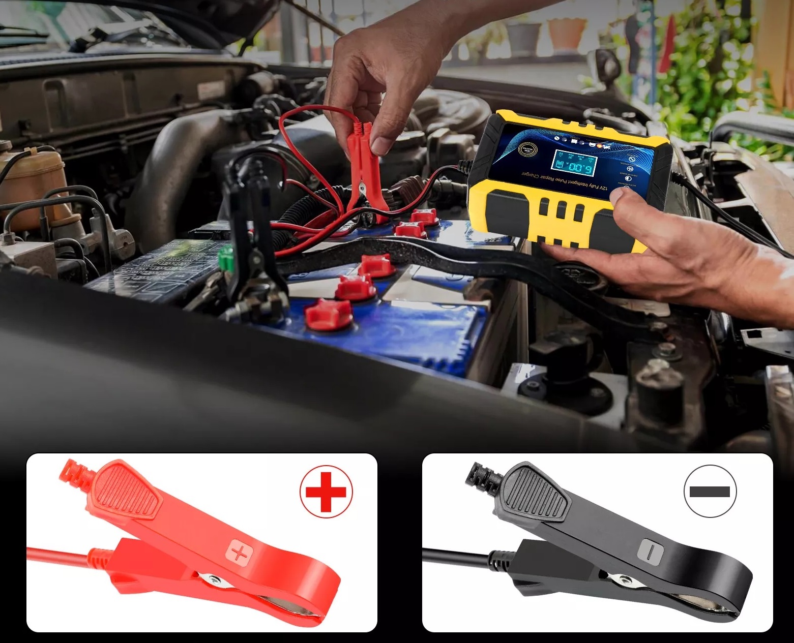 Поєднання вентилятора охолодження й алюмінієвого радіатора значно подовжує термін служби батареї. Оснащений режимом ремонту, він спеціально розроблений для таких проблем, як несправність акумулятора, збій заряджання, великий внутрішній опір тощо. Зарядний пристрій акумулятора має тривалий термін служби та дуже корисний для мотоциклістів, які довго працюють.