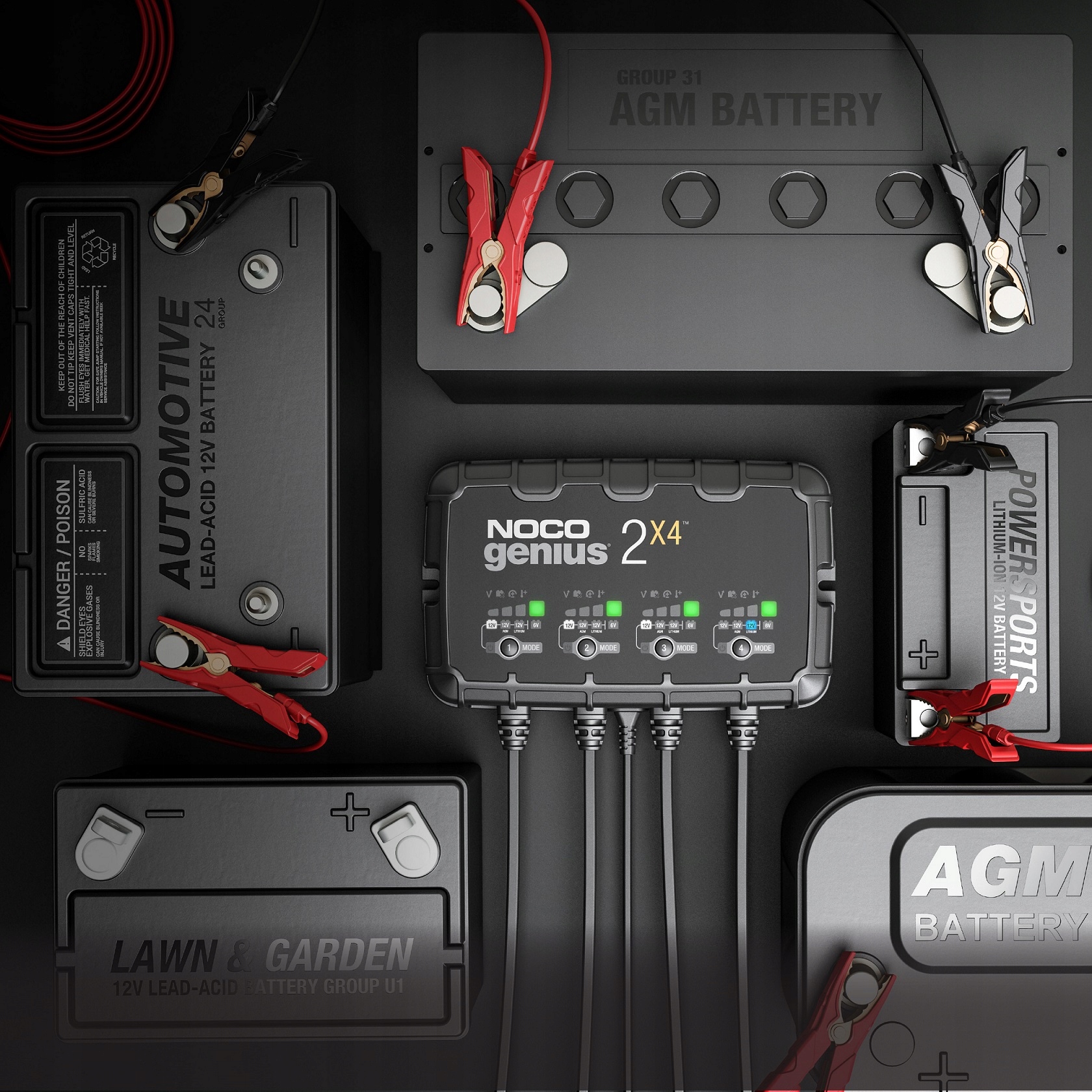 NOCO GENIUS2X4, 4 пристрої (4 зарядні пристрої в одному корпусі, здатні заряджати 4 акумулятори одночасно), 8 ампер (2A на кожен зарядний пристрій).