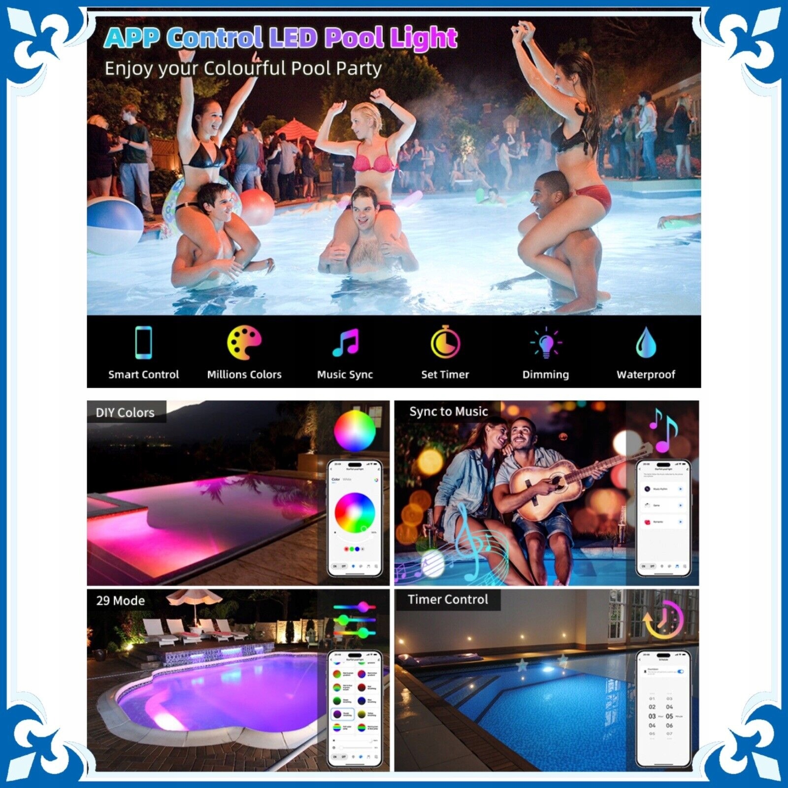 Простий у використанні: світильники для відкритого басейну швидко та легко встановлюються, тож ви можете миттєво створити яскравий барвистий басейн.