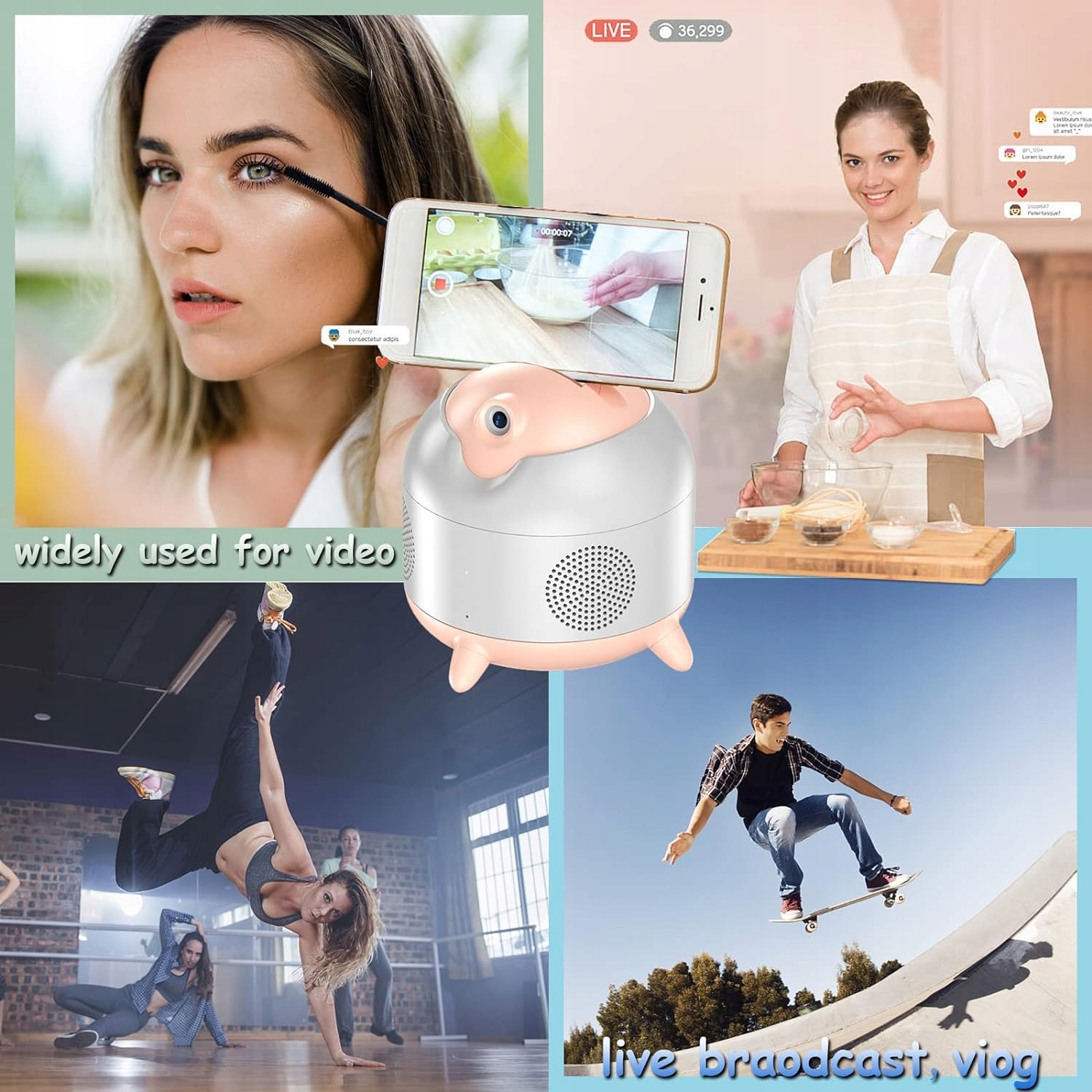 Inteligentny uchwyt do smartfona z automatycznym śledzeniem AI, głośnik