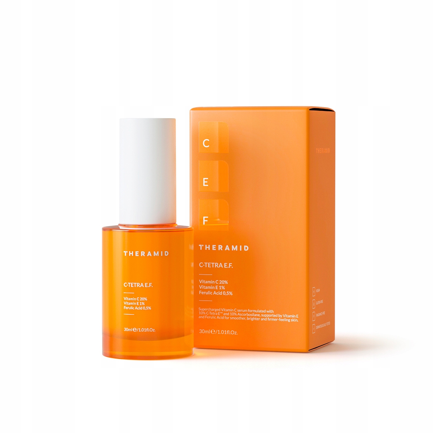 C-TETRA E.F. це продукт, насичений вітаміном С (20%). Він має дуже інтенсивну антиоксидантну дію, щоб забезпечити оптимальний захист від вільних радикалів, покращити сяйво шкіри та протидіяти недолікам, викликаним фотостарінням. Використовуйте цей продукт, якщо ви шукаєте помітно сяючу, гладку, пружну та молодшу шкіру.