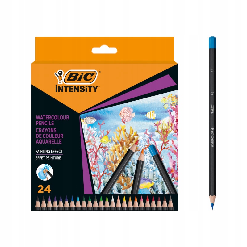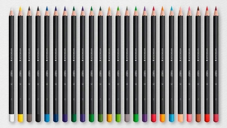 Інтенсивність BIC Premium Watercolor 24 Каїрі Чорний матовий колір має практичний маркування кольору в кінці кожного олівця, що дозволяє швидкої ідентифікації кожен з 14 кольорів