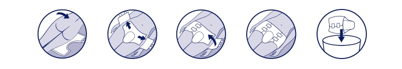 підгузники можуть бути засновані у пацієнта в положенні стоячи або лежачи. Після використання продукту слід прокатати і кинути в сміттєвий балончик. Одноразовий продукт - не використовуйте знову.
