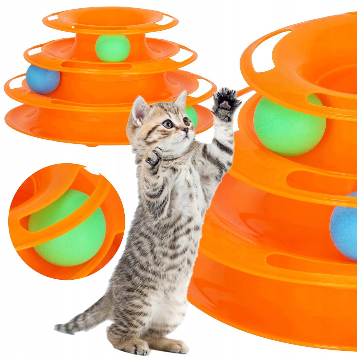 ІНТЕРАКТИВНА 3-РІВНЕВА ІГРАШКА КОТЯЧА ВЕЖА З М'ЯЧИКАМИ