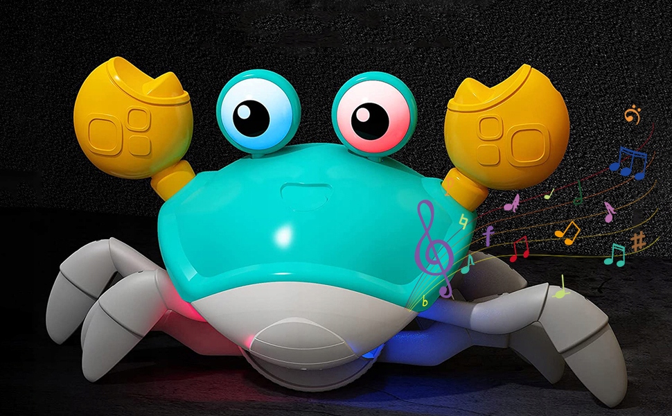 Як тільки він відчує перешкоду, він швидко змінить свій шлях, і веселощі ніколи не закінчаться! Окрім повзання, краб також відтворює музику - завдяки цьому слух дитини також буде стимулюватися під час гри.