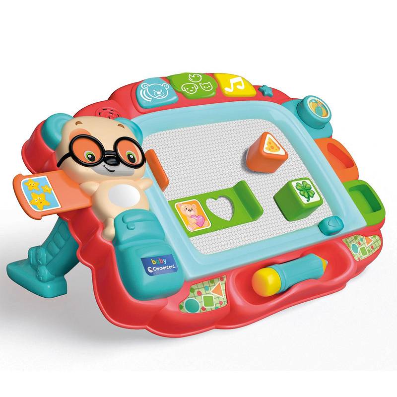 Перша дошка для гри з малюванням спеціальним олівцем, зі знімними штампами та шаблонами. Дитина слухає голос милого ведмедика, звуки тварин і багато веселої музики.