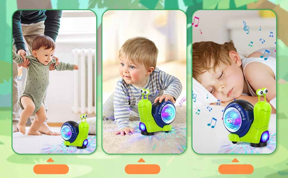✔de динамічна музика та барвисті світлодіодні світильники: вбудований світлодіодний світло та музичний плеєр роблять цей танцюючий равлик блищав у кількох різних кольорах і відтворювати динамічну музику після вмикання. Візьміть свою дитину, щоб грати з танцювальною равликом, ваша дитина полюбить смішну, новоспечену равлику і буде з ним розважитися, це буде чудовий момент. Це допоможе сенсорному розвитку вашої дитини.