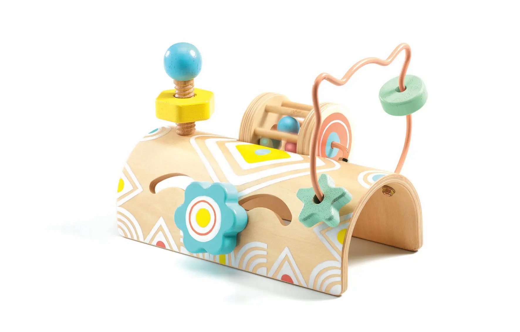 Інтерактивна іграшка Baby Tabla Djeco . Інтерактивна іграшка для вправ Babytabla стимулюватиме почуття вашої дитини. Складений з різних елементів: різьблення, загвинчування шурупа або обертання колеса, дитина отримає задоволення. Ця іграшка містить кілька видів діяльності, які стимулюватимуть кожну дитину до гри