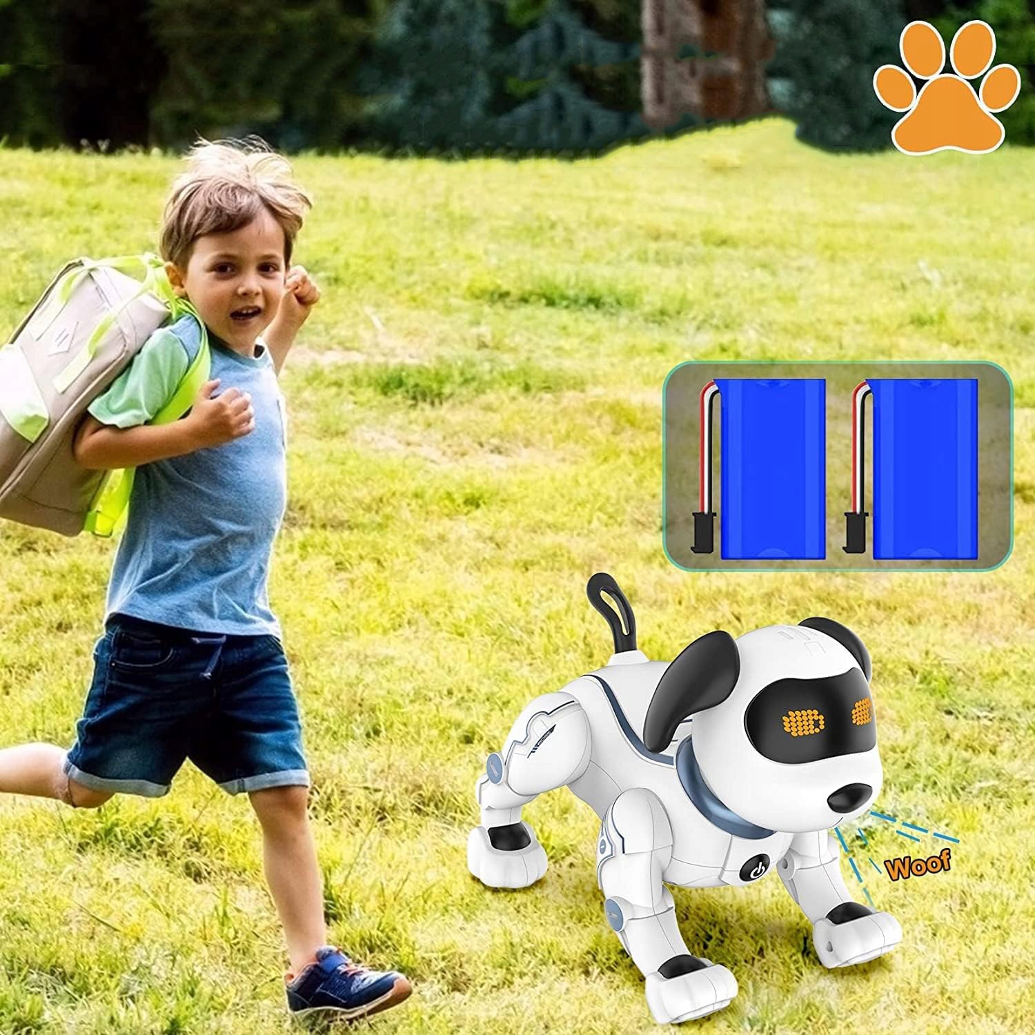 🐶🤖【 Високоякісні матеріали】: іграшка роботів для собак виготовлена з високоякісної пластику з гладкою поверхнею і не шкодить рукам дітей під час гри. Використовує акумулятор 3,7 В (потрапляє в обсяг доставки), 2 х батареї AAA 1,5 В (вони не включаються до обсягу доставки). Ця розумна собака -робота проста у використанні та захоплюючий подарунок для дітей, що від 3 років, і стане хорошим супутником вашої дитини.