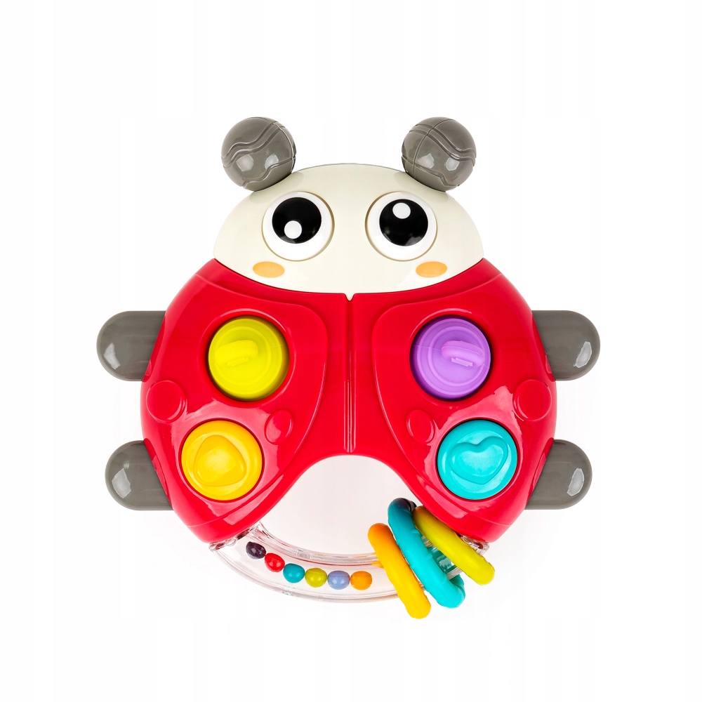 Його різнокольорові крапки викликають звуки, мелодії та підсвічування кнопок, а одна з них також відповідає за висування ніжок сонечка. Вусики цієї іграшкової комахи рухливі, і від їх повороту у сонечка рухаються очі. Іграшка оснащена зручною ручкою, прикрашеною рухомими кільцями, всередині яких знаходяться брязкаючі намистини.