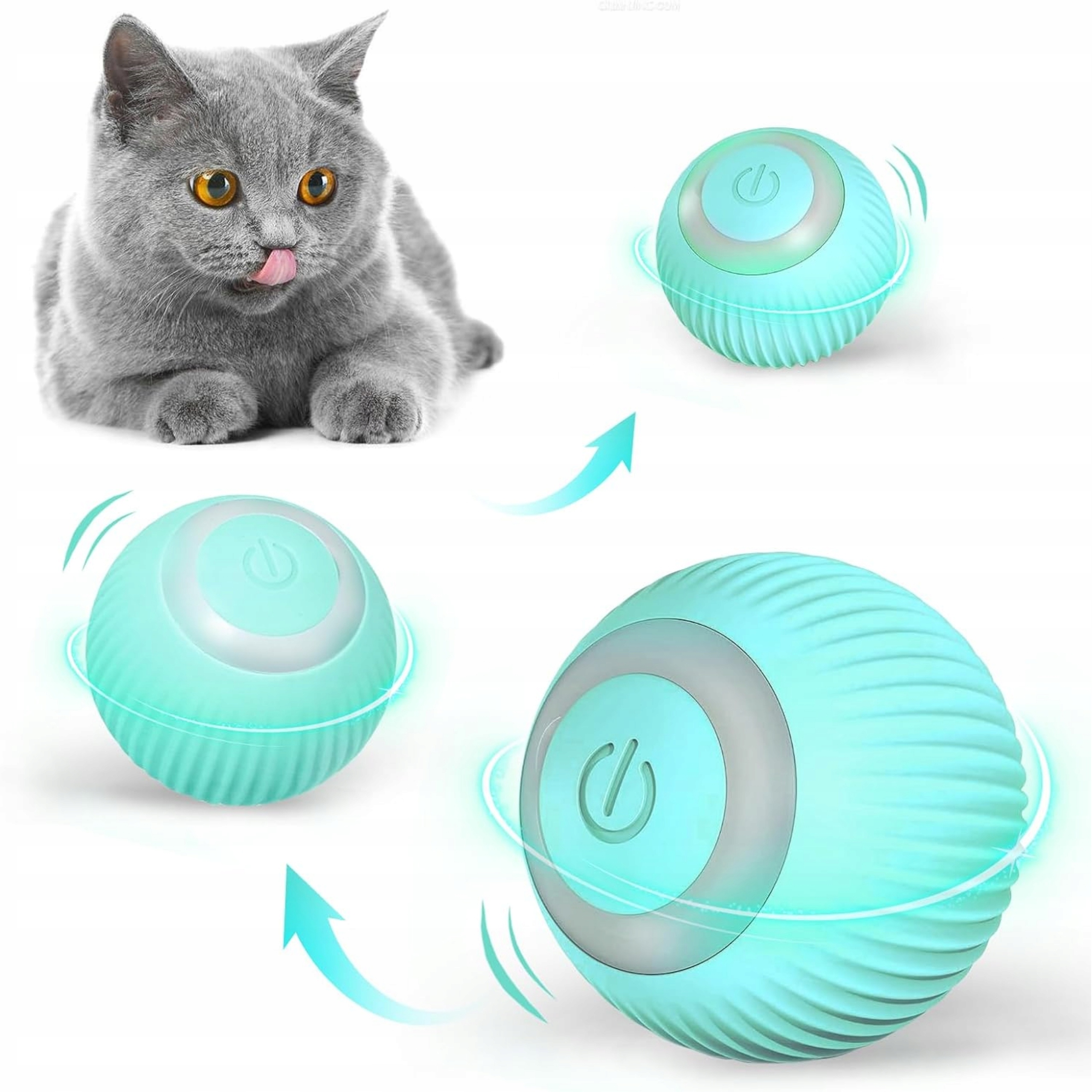 ІНТЕРАКТИВНА ІГРАШКА КІШКА ЕЛЕКТРИЧНА М'ЯЧКА, ПЕРЕМІЩНА, З АКУМУЛЯТОРОМ, СИНЯ