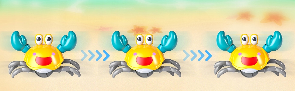 Ця електрична іграшка у формі краба має яскраві кольори та динамічну музику, коли вона рухається, а її очі світяться. Це дуже привабливо для немовлят і допомагає їм швидко освоїти різні рухові навички, такі як піднімати голову, сидіти, перекочуватися, повзати та ходити.