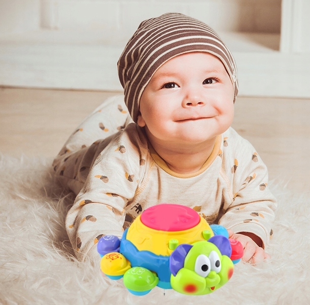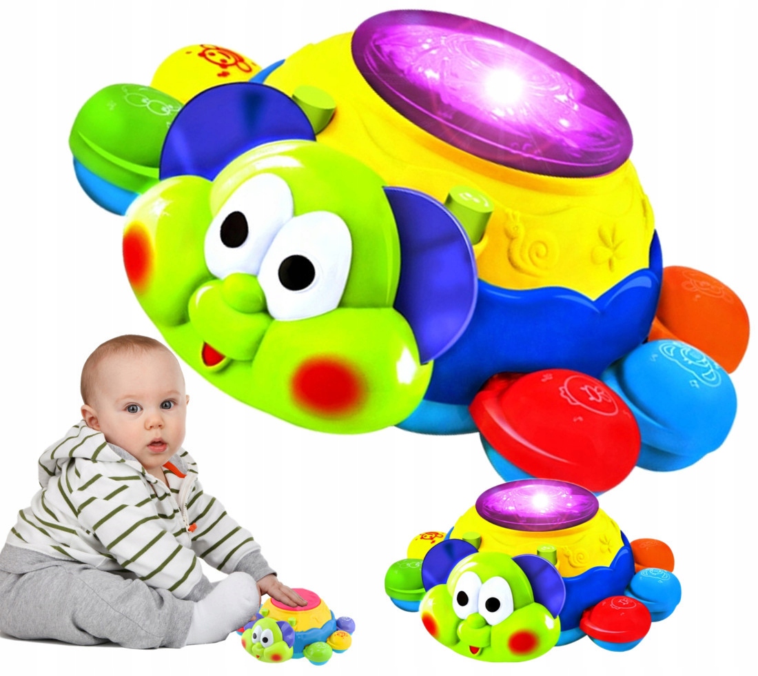 - іграшка відтворює мелодії та бігає (тікає), що допомагає навчитися повзати