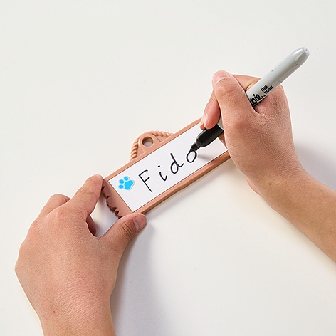 Після того, як ви приб'єте табличку з іменем і наповните миску холодною водою, на підставці перед будкою з'являться відбитки лап!