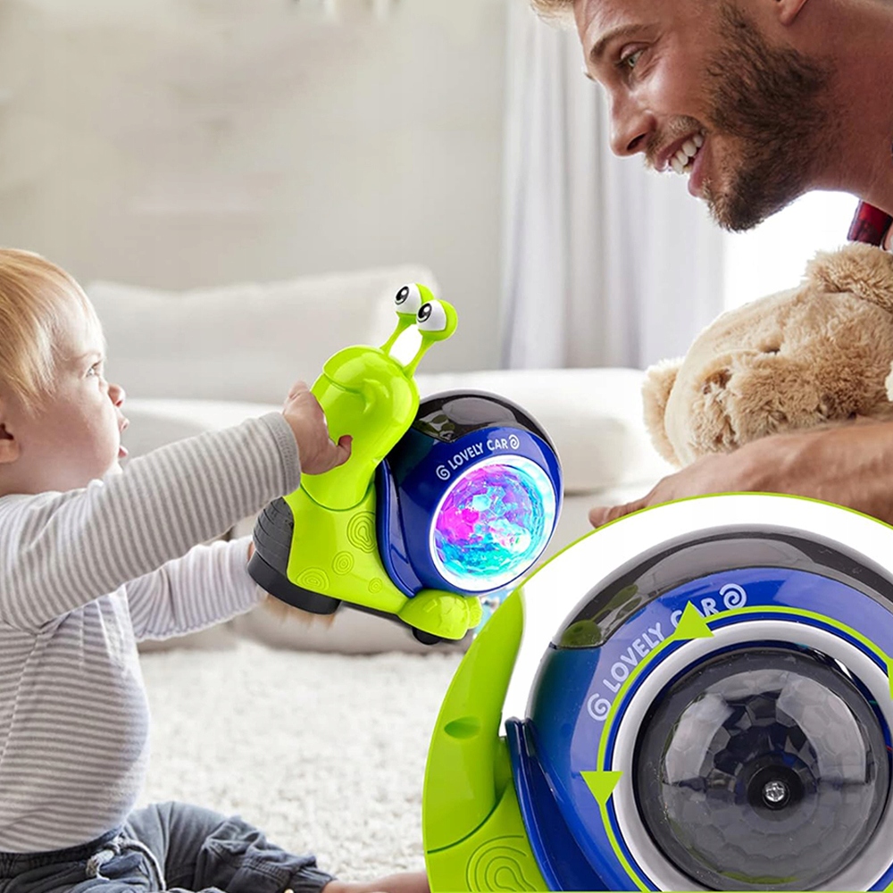 Динамічна музика та кольорове світлодіодне підсвічування: завдяки вбудованим світлодіодним підсвічуванням і музичному плеєру цей танцюючий равлик світитиметься кількома різними кольорами, а коли його ввімкнути, відтворюватиме динамічну музику, знімаючи ваш дитина разом із танцюючим равликом. Веселіться разом, вашій дитині сподобається кумедний повзаючий равлик, і гра з ним стане чудовим моментом. Це допоможе сенсорному розвитку вашої дитини.