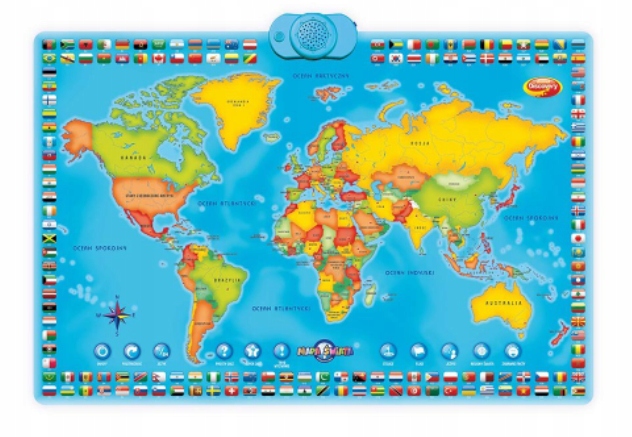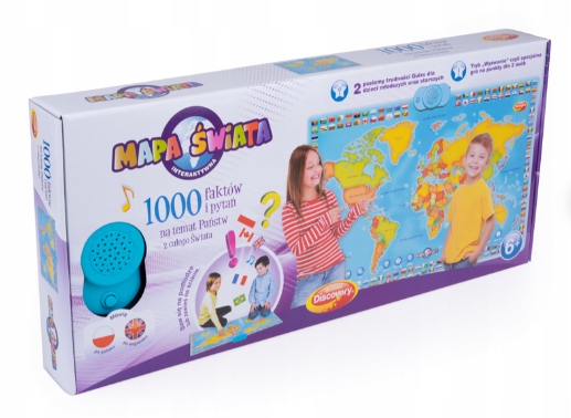 Двомовна карта (польська/англійська), розроблена з максимальною відданістю та відданістю, щоб дитина могла використовувати її протягом багатьох років. З Інтерактивною картою діти здійснять дивовижну подорож навколо світу. Завдяки йому наймолодші мають доступ до обширних знань про 78 країн. Вони дізнаються про столиці, прапори, мови, якими розмовляють жителі та різноманітні цікаві факти. Опція зміни мови допоможе вам вивчити англійську.