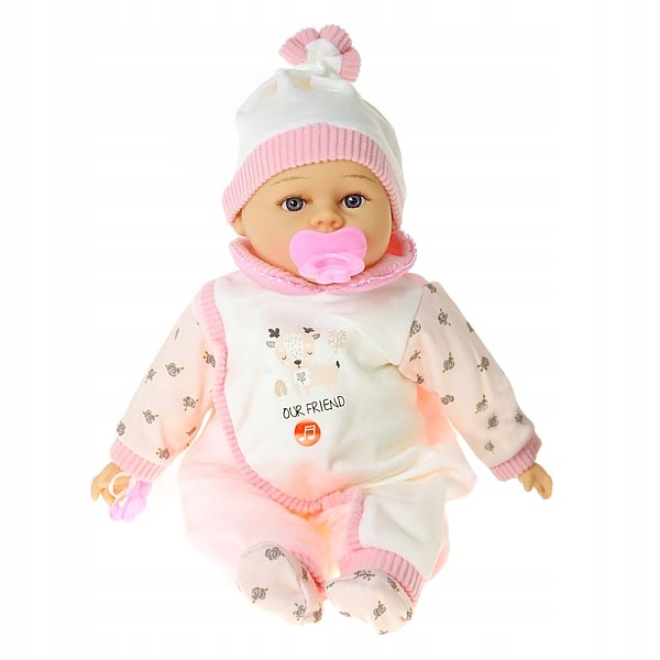 Лялька говорить і співає польською. Ви можете активувати чудові функції, натиснувши кнопку, розташовану на животі.