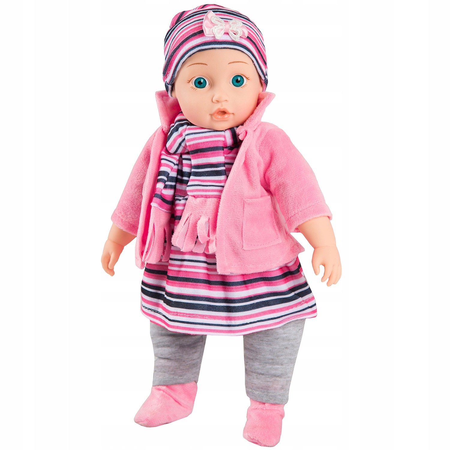 Одяг барвистий і м'який. Набір разом із шкарпетками, шапкою та шарфом зроблений дуже ретельно. Одяг можна легко зняти та випрати, тому ляльку легко підтримувати в чистоті.