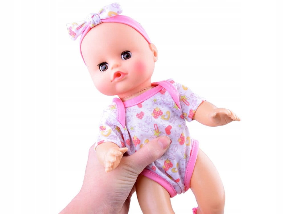 Лялька одягнена в боді, пов'язку та носочки. Ви можете загорнути її в ковдру і одягнути нагрудник під час годування. Також в комплект входить пелюшка і горщик для ляльки.