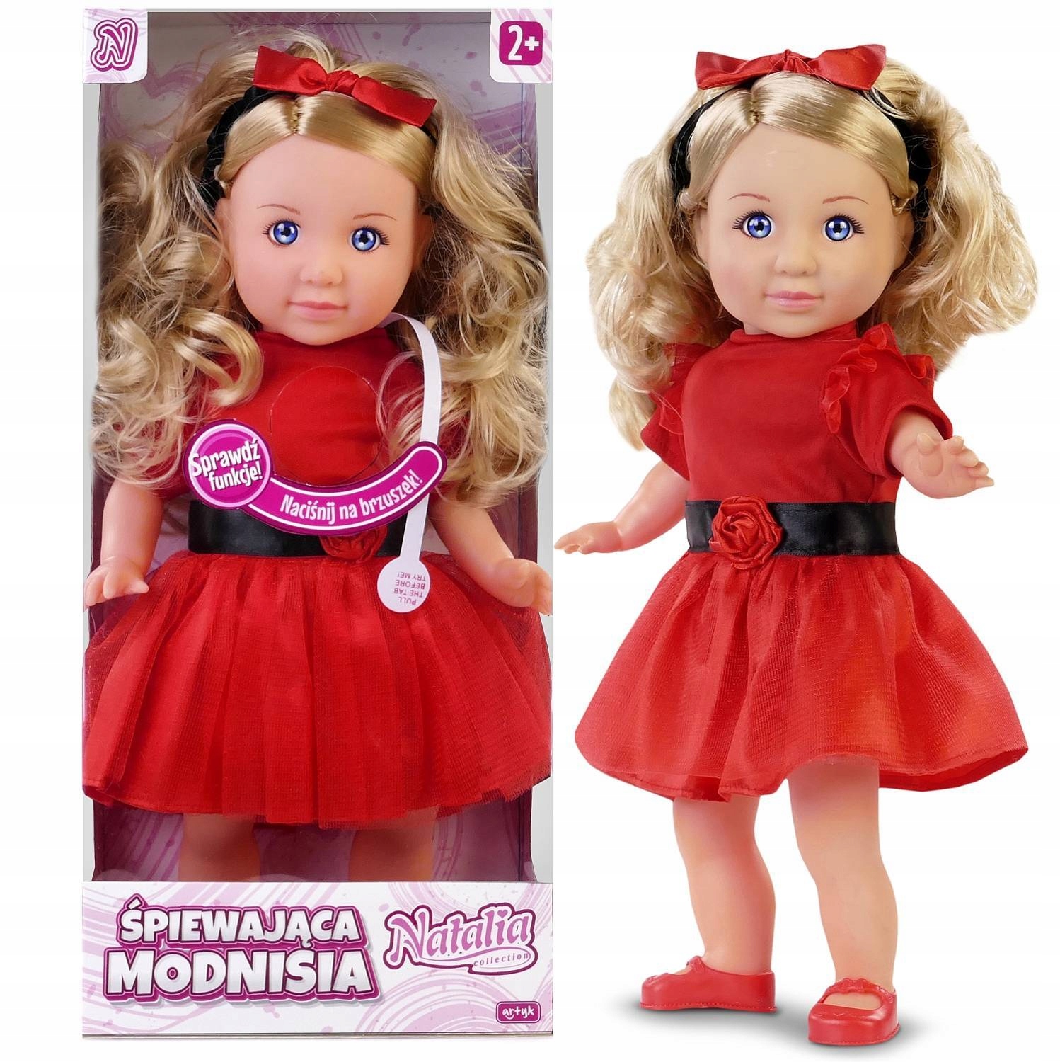Лялька Наталія справжня модниця. На ній красива червона сукня з чорним поясом і червоною трояндою посередині. У неї чарівне обличчя, довге світле волосся і чорна пов’язка з червоним бантом.