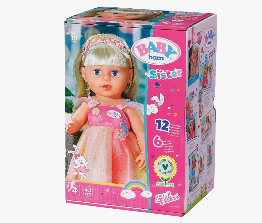 Як кожна дівчинка, Baby born завжди мріяла про сестричку, з якою вона могла б обіймати та розмовляти, ділитися одягом та секретами, а також переживати фантастичні пригоди під час граючи разом. І ось вона: інтерактивна маленька сестричка!