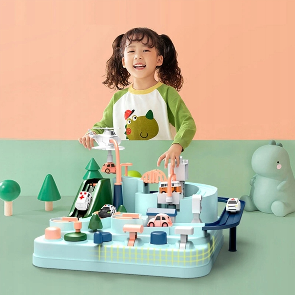Представляємо вам інтерактивну гоночну трасу, розвиваючу іграшку, яка відправить вашу дитину в подорож, повну пригод. У набір входить сама траса, 4 машини і вертоліт. Ці додаткові елементи зроблять розвагу ще більш захоплюючою, а також дозволять вам підключити та розвинути інтерес вашої дитини до автомобілів. Встановлені в іграшці шестерні та перешкоди ускладнюють проходження маршруту - це чудовий спосіб розвитку уяви та творчих здібностей. Набір працює без батарейок - всі елементи працюють завдяки вбудованим механізмам. Завдяки цьому вам не доведеться хвилюватися, що іграшка розрядиться, поки ваша дитина нею користується!