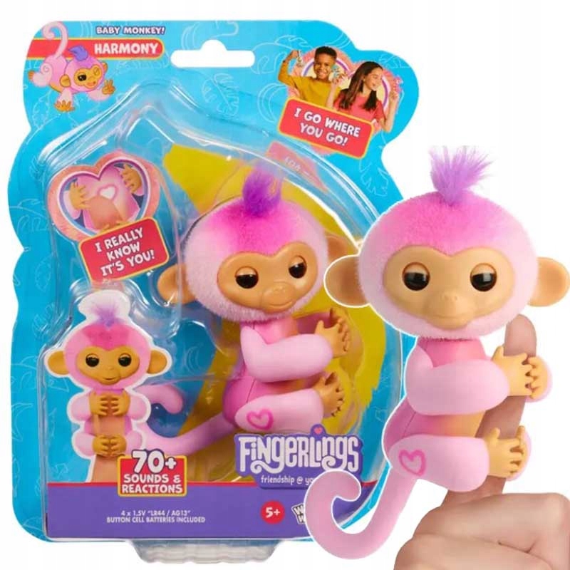 Сходіть з розуму та продемонструйте дружбу на кінчиках ваших пальців із абсолютно новими Fingerlings, чарівними інтерактивними мавпочками з понад 70 звуками та реакціями. Ці найновіші пальчики такі м’які, що їх можна гладити завдяки пухнастому хутру на їхніх головах! Кожен новий персонаж Fingerlings має унікальний голос і індивідуальність із понад 70 чарівними звуками та реакціями. І ці пальчики справді знають, коли вони на вашому пальці – просто дивіться, як їхні серця запалюються та як змінюється їхній характер, коли вони надягають і знімають ваш палець!