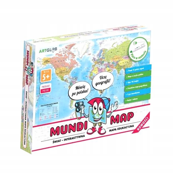 Ця карта, безсумнівно, захопить вашу дитину на довгі години, перенісши її в різні куточки світу. Інтерактивна ручка, що входить до набору, покаже дитині барвистий та захоплюючий світ, завдяки чому MundiMap швидко стане чудовою альтернативою комп’ютеру чи смартфону. Воно покаже, що здобувати знання можна так само цікаво, як і розважатися в парку. MundiMap дає можливість дитині самостійно вибрати країну, яка її цікавить, і розширити свої знання про неї. Він не нав’язує темп роботи, а знання передаються доступно та привабливо. MundiMap містить величезну кількість інформації, тож ваша дитина щоразу вмикатиме карту дізнаватиметься щось нове! Безсумнівною перевагою є приємний для ока графічний дизайн, який робить MundiMap корисним, функціональним і читабельним як для дослідників-початківців, так і для майбутніх любителів подорожей, а також для всіх, хто хоче розширити свої знання. MundiMap MundiMap – навчання через гру MundiMap дозволить вашій дитині ефективно використовувати час після школи, а також матиме реальний вплив на розширення її знань з географії. Карта містить ретельно відібрану інформацію про 195 країн. Він надає інформацію про країни, столиці, фізичну та політичну географію, а також найважливішу інформацію про дану країну та цікаві факти. Крім того, ваша дитина дізнається про тваринний і рослинний світ, характерні для даної країни. На цій унікальній карті є аж 3 ігри-вікторини, які стануть джерелом знань і розваг для всієї родини. Ігри вбудовані в інтерактивну карту, тож ви ніколи її не втратите! Унікальна карта для кожного MundiMap — це актуальна політична карта, яка стимулюватиме дитячу цікавість і дозволить всій родині провести час за навчанням і розвагами. Переконані, MundiMap здивує і дорослих! Використовуючи PEN, ви можете досліджувати найвіддаленіші куточки світу, не виходячи з дому.