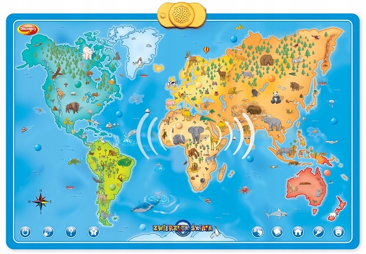 Карта підготовлений з найвищою відданістю та відданістю, щоб дитина могла використовувати його протягом багатьох років. З Інтерактивною картою діти відкриють таємниці світу тварин. Завдяки ньому дітям доступні широкі знання про 72 тварини. Вони дізнаються звуки тварин, ареал їх появи, їжу та різні цікаві факти про них.