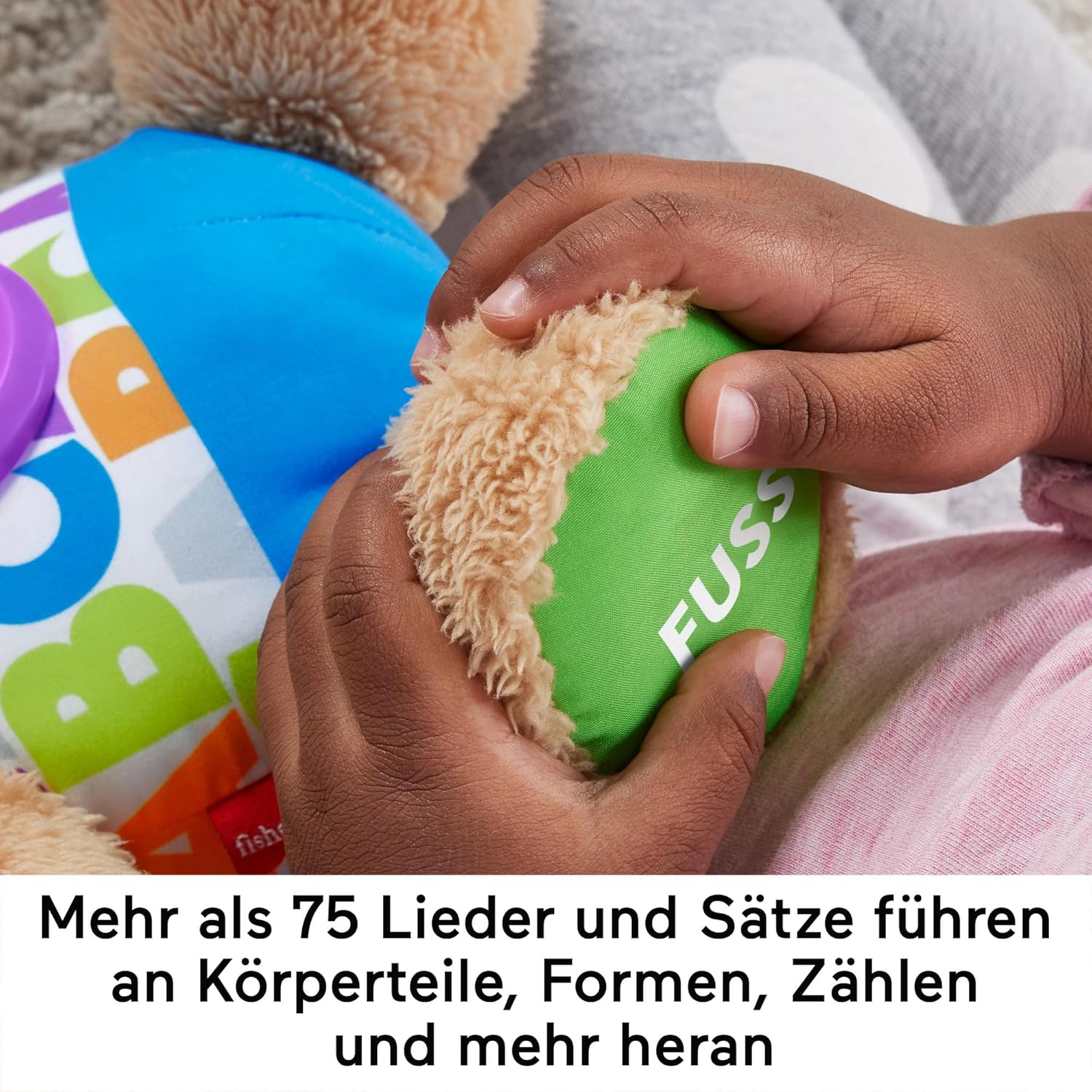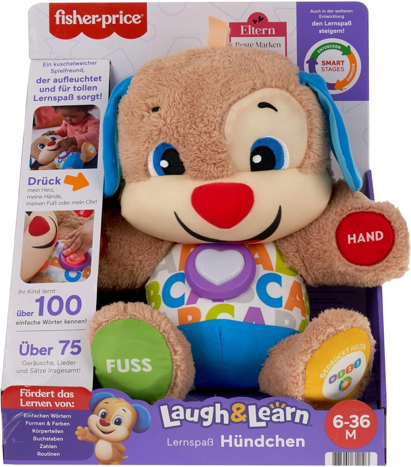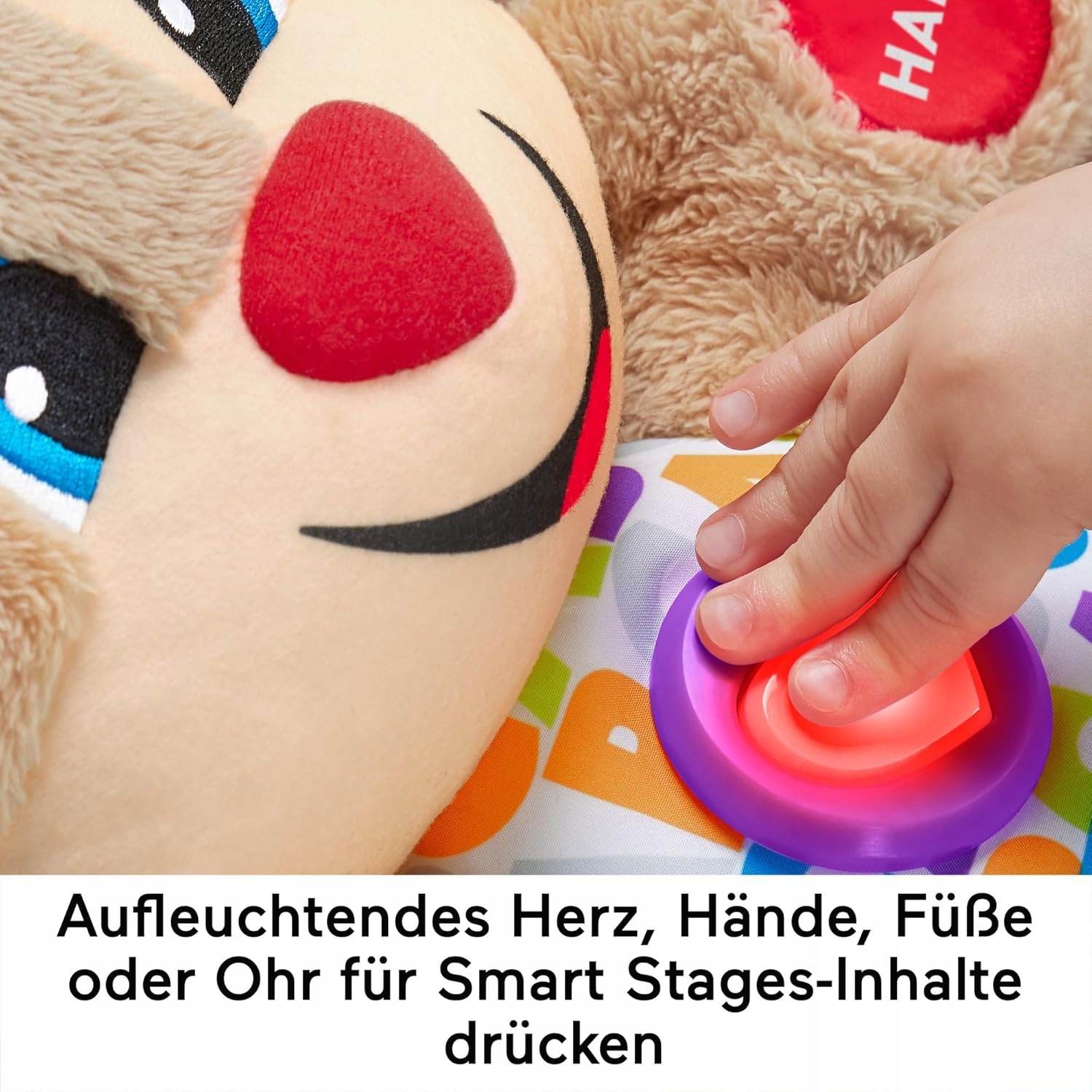 Собака реагує на дотик, видає веселі звуки та пісні, які навчають кольорам, частинам тіла та першим словам 👶🎶. Завдяки функції Smart Stages™ контент адаптується до віку та рівня розвитку дитини 📚💞