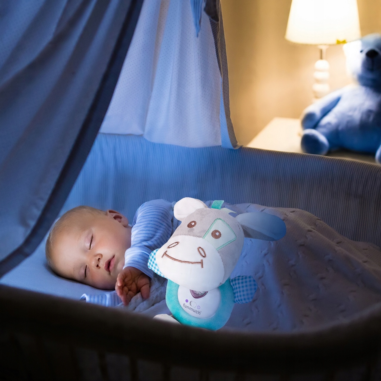 Наша іграшка видає тихі мелодії та виготовлена з м’якого матеріалу, що робить її ідеальною як м’яку іграшку. Маючи його з собою, ваша дитина швидше засинає та відчуває себе в безпеці.