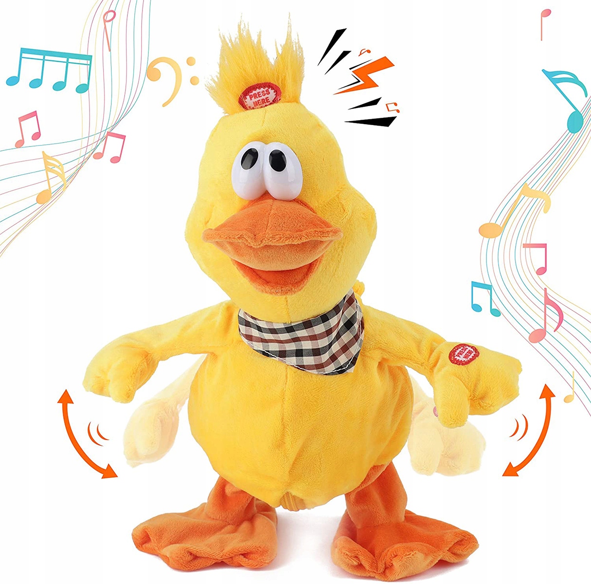 коли ви натискаєте кнопку на крилі, качка починає ходити та махає крилами, ви чуєте веселу музику.