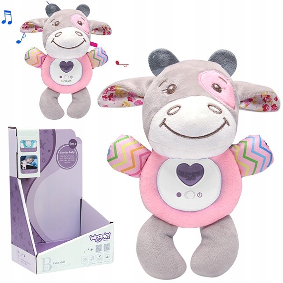 Інтерактивний плюшевий бичок заспокоїть і покладе вашу дитину спати. Іграшка має опцію ввімкнути колискову для нашого малюка та має опцію відображення різнокольорових вогників, завдяки чому нашій малечі не буде нудно іграшка. Цей м'який на дотик ведмедик стане другом нашої дитини з раннього віку. Іграшка адаптована для немовлят, тому вона м'яка, наповнена ватою, тому ми не повинні турбуватися про те, що наша дитина може поранитися. Крім того, плюшеву іграшку можна безпечно та легко почистити (знявши механізм), не побоюючись будь-яких пошкоджень.