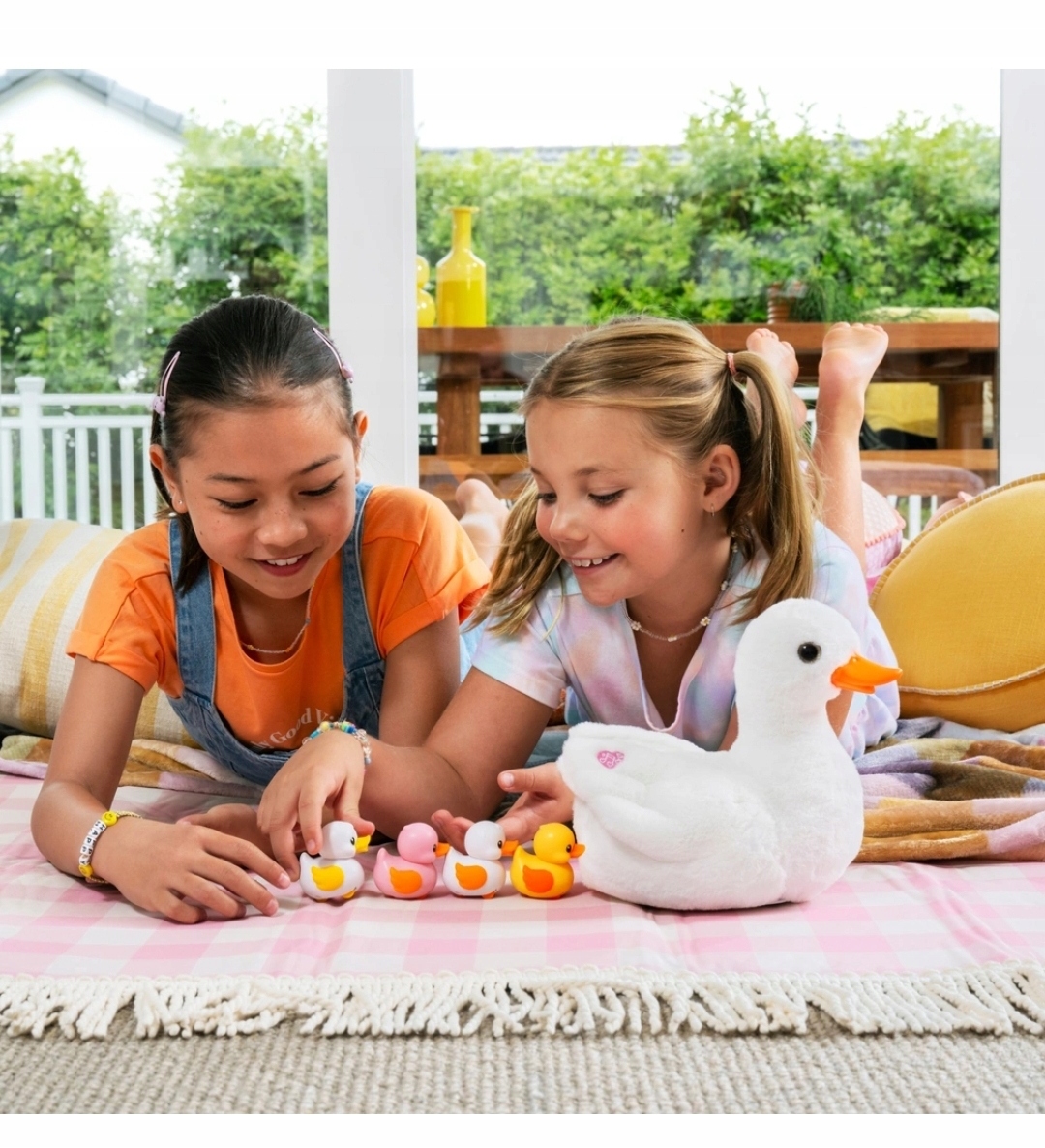 Вміст: 1 інтерактивна плюшева качка, 4 яйця з принаймні 2 курчатами та 2 інших сюрпризи