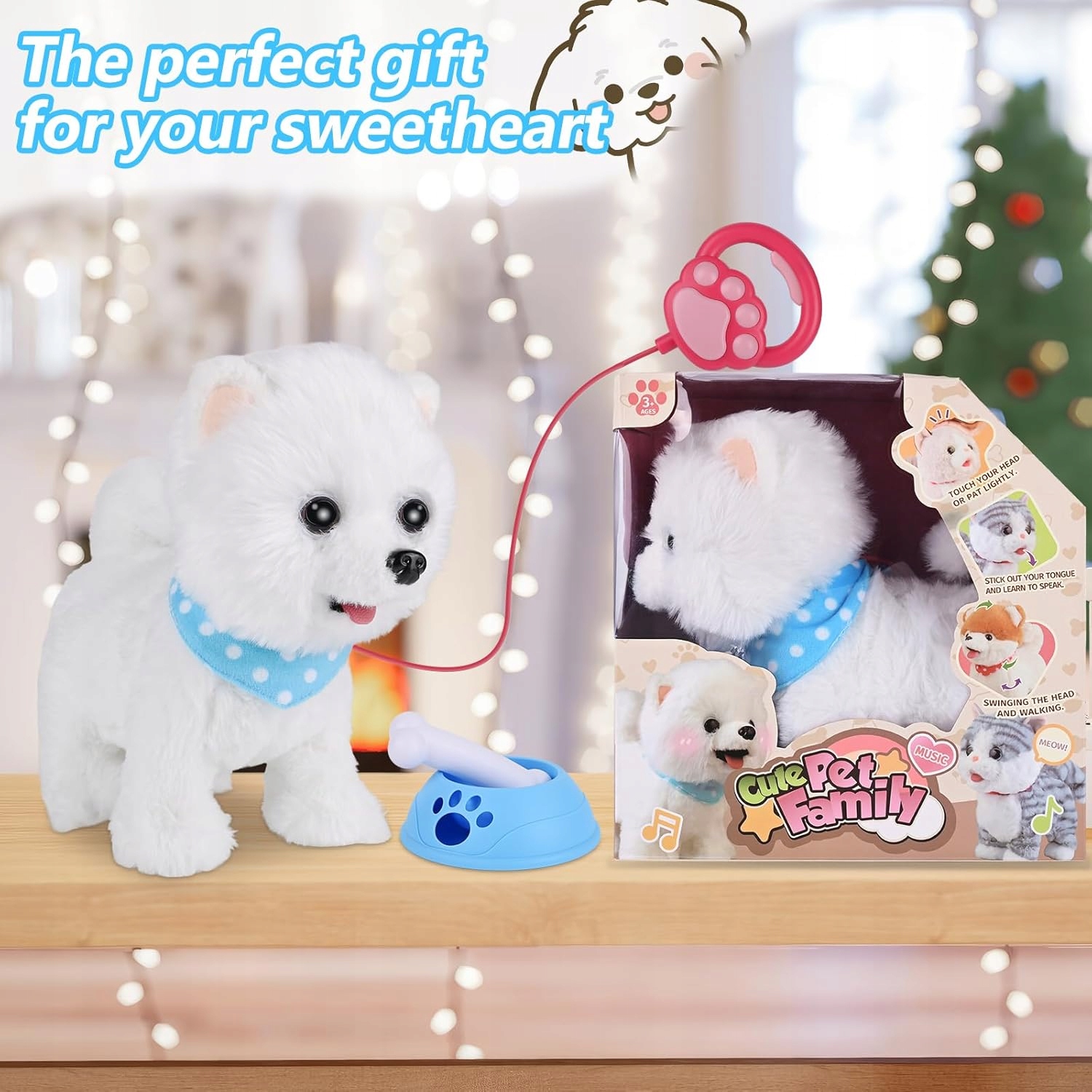 ІНТЕРАКТИВНА ПЛЮШЕВА СОБАКА З ДИСТАНЦІЙНИМ КЕРУВАННЯМ, ВИГУЛЯЄ ЦУЦЕНЯ ЗІ ЗВУКОМ ТА АКСЕСУАРАМИ
