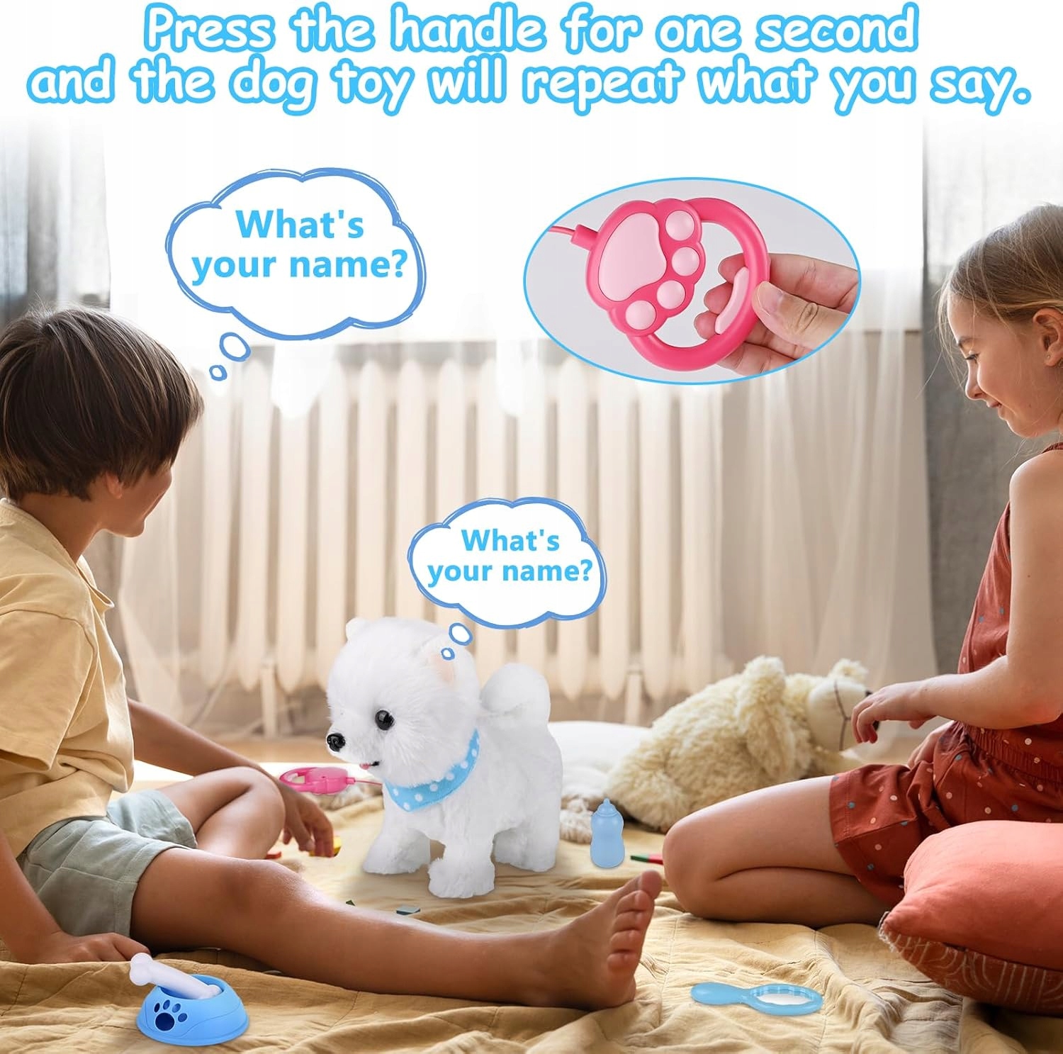 Інтерактивна плюшева собачка з дистанційним керуванням - електронна іграшка для догляду та вигулу для дітей