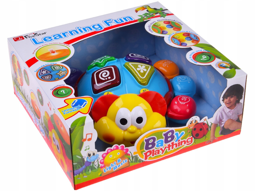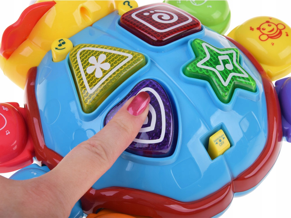 - на спині черв'яка є кнопка з нотою, яка активує веселі мелодії, що супроводжуються миготливими вогниками