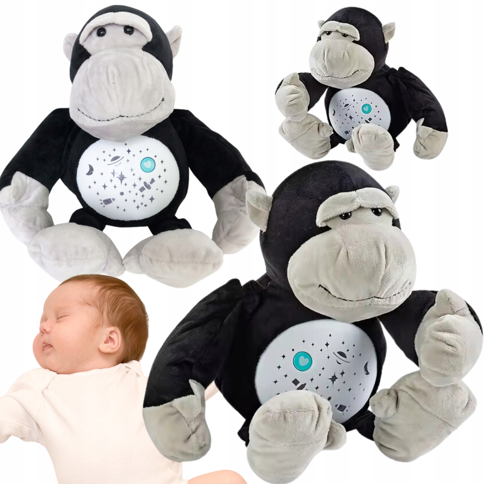 Мавпочкаце чарівний супутник для кожного малюка. Ця чарівна мавпочка не тільки створить м’яку та затишну компанію під час сну, але й створить дивовижну атмосферу, яка допоможе вашій дитині заснути. За допомогою зіркового проектора Monkeyперетворює стелю чи стіну на захоплюючий небесний пейзаж, сповнений блискучих зірок і заспокійливого світіння. Це не тільки чудовий візуальний досвід, але й чудовий спосіб занурити малюка в спокійний стан релаксації та підготувати його до сну. Крім того, м'яка іграшка оснащена вбудованими колисковими, які наповнюють простір ніжними, заспокійливими мелодіями. Ці тонкі звуки в поєднанні з проекцією зірок створюють атмосферу, яка сприяє спокійному засипанню та глибокому сну.