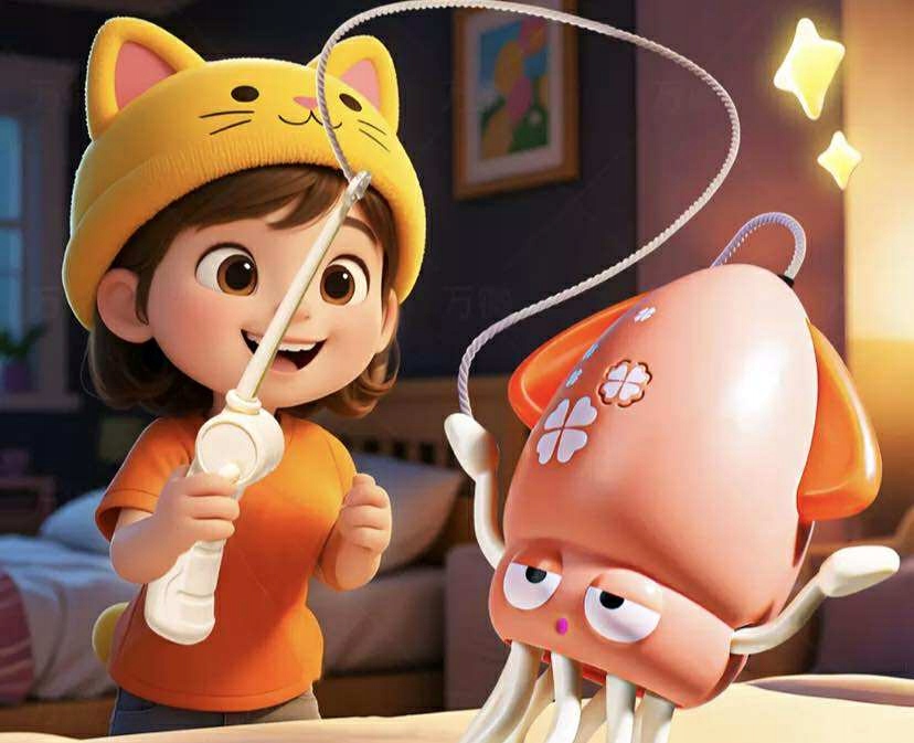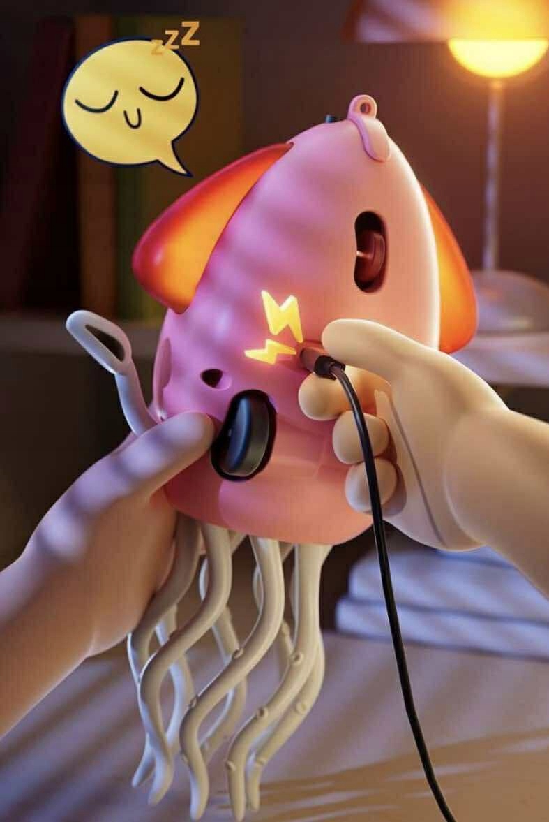 Іграшка ритмічно рухається під музику, а її кольорове світлодіодне підсвічування привертає увагу дитини. Інтелектуально розроблені «щупальця» виконують плавні, хвилеподібні рухи, створюючи захоплююче видовище.