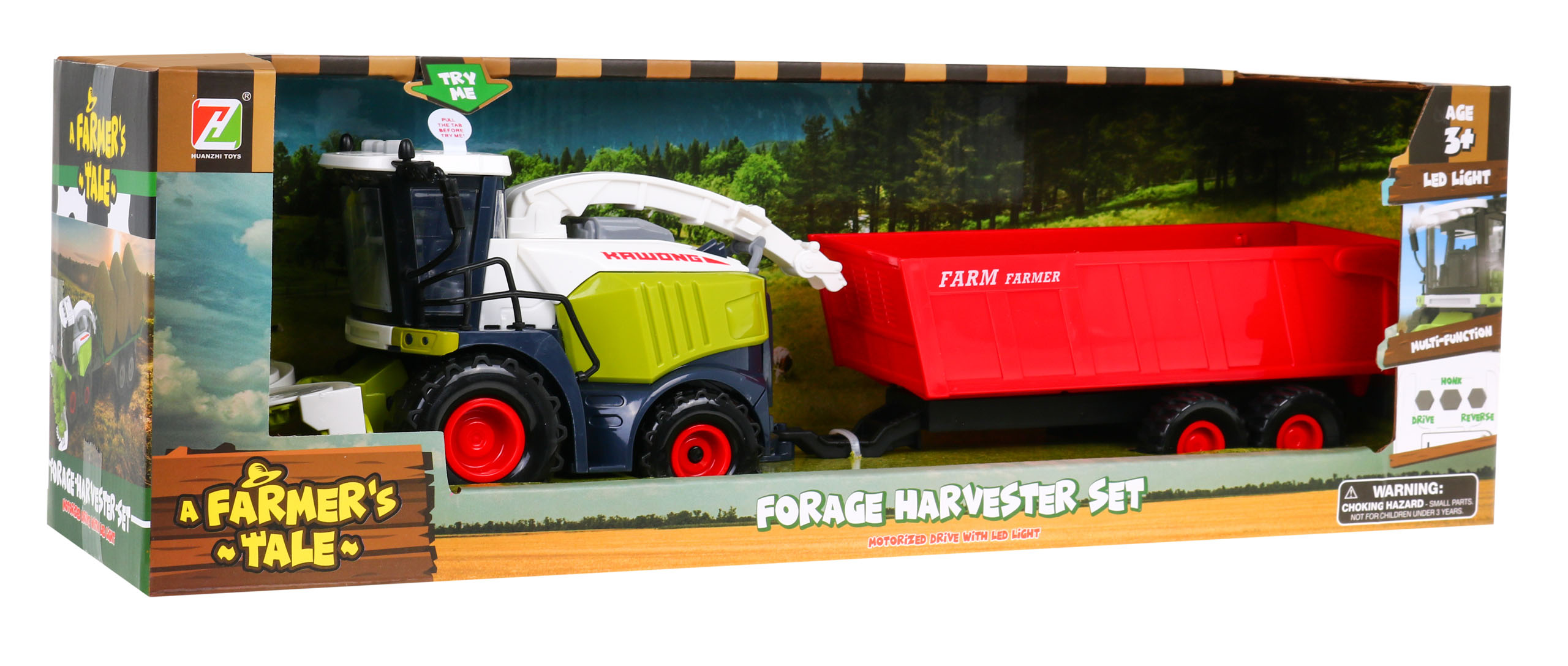 - Опис Зернозбиральний комбайн із причепом Добротно зроблений інтерактивний зернозбиральний комбайн із приводом, звуковими та світловими ефектами — пропозиція для дітей із 3-річний вік. Іграшка ідеально імітує справжній зернозбиральний комбайн, має розвантажувальну трубу, яку можна підняти і обертати на 360 градусів, а також знімний, піднятий і відкритий причіп На даху комбайна є музична панель з трьома функціональними кнопками, які при натисканні , увімкніть фари у верхній частині салону та активуйте такі звуки, як: запуск двигуна, звуковий сигнал і сигнал заднього ходу. Музична панель живиться від 3 батарейок AG13, які входять в комплект. Функції іграшки: - їзда в комбайні, - піднята і обертальна розрядна труба, - піднятий, відкритий і від'єднаний причіп, - звукові ефекти, - Розміри комбайна без причепа ок. 20 см х 11 см х 19 см, - комбайн бл вміст - зернозбиральний комбайн з відчіпним причепом.< /li>