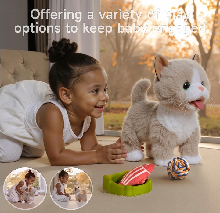 Зустрічайте чарівного інтерактивного кошеня, який виглядає і поводиться як справжній домашній улюбленець! 🐈💗 Воно рухається, нявкає, виляє хвостом і реагує на дотики – це ідеальний товариш для ігор, який вчить дітей співчуття, відповідальності та любові до тварин.