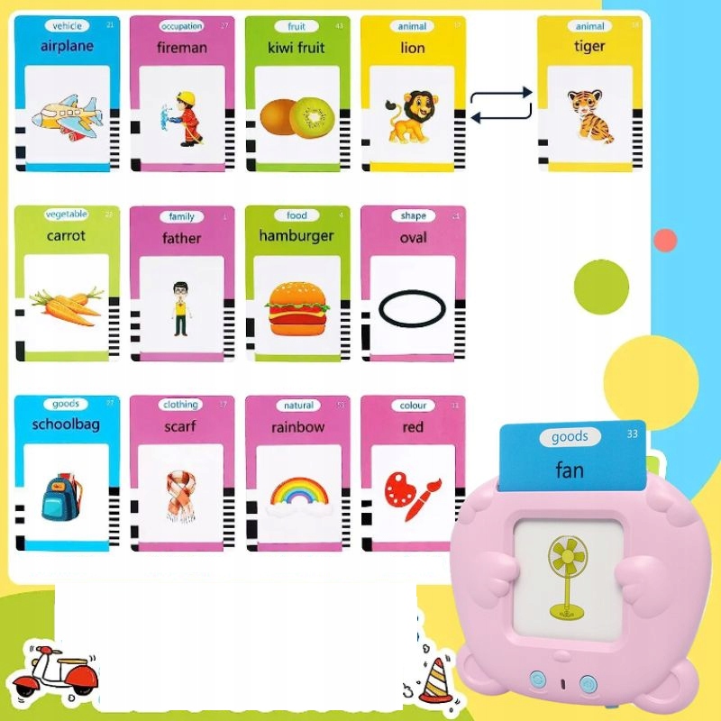 Знайомство з англійською мовою з раннього віку є ефективним способом почати навчання. Форма гри спонукає використовувати пристрій якомога частіше. Його форма та барвисті гарні листівки з малюнками сподобаються найменшим.